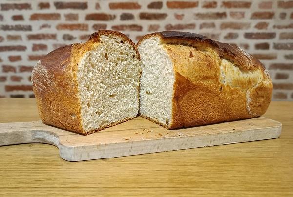Ingrédients: Farine T65, eau, levain, beurre, oeufs, poudre de lait, levure, miel et sel.